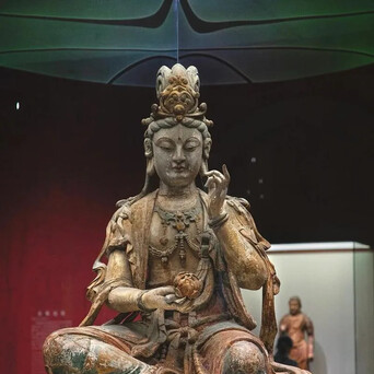 图二 中国国家博物馆中国古代佛造像展厅中,有一座高达2米的宋代木雕观音坐像,以裸展的方式给人以巨大的视觉冲击