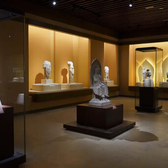 图三 山西博物院佛风遗韵展厅,部分石刻造像裸展,拉近了文物与观众的距离