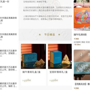 此外,万豪旗下的北京威斯汀酒店、北京金隅喜来登大酒店、北京金融街丽思卡尔顿酒店、北京富力万丽酒店等多个高端酒店也均有粽子礼盒售卖,价格在数百元不等,且都用了定制礼盒,包装精美。几款较贵的礼盒内,除了包含粽子外,还有鸭蛋、茶叶等。